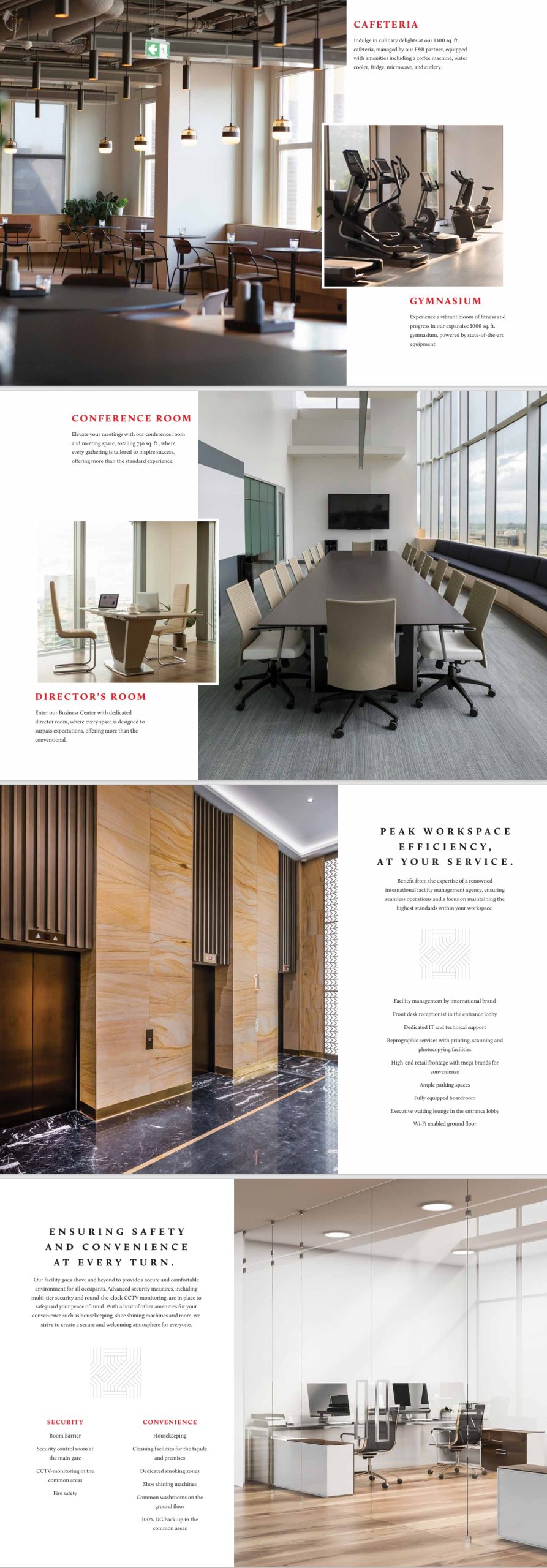 Premium amenities: high-speed lifts, 24/7 security, ample parking, landscaped terraces—designed to enhance productivity and comfort